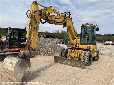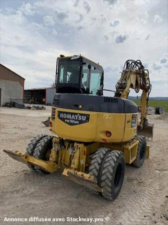 Pelle à pneus KOMATSU type PW98MR-6 Année : 2011 Heures : 6600 Poids : 9.5 t Lame + stabilisateurs Déport pied de flèche - Flèche à volée variable + Déport Ligne hydraulique Pneus jumelés changés à 5000 h Coupleur hydraulique + godets Les pneus ont été changés il y a 1000 h. Une ligne hydraulique a été ajoutée La révision a été faite récemment