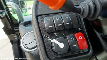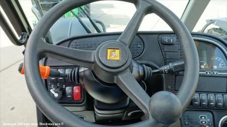 125 CV, 4 vitesses 33 km/h, Alliance A580 460/70R24 agro industriel Monolevier servo 1 aux Cabine vitres teintées avec chauffage Siège suspendu: tissu réglage dossier Tablier Qfit à verrouillage hydraulique Phares de travail av Protection sous chassis Pont avant à différentiel à glissement limité Pare-soleil: avant et toit