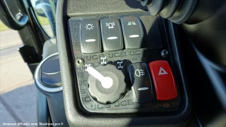 Michelin XMCL 460/70R24 traction agricole Monolevier servo,1 aux Cabine vitres teintées avec chauffage Siège pneumatique KAB avec joystick sur accoudoir Tablier Qfit à verrouillage hydraulique Phares de travail avant et arrière Protection sous chassis Pont avant à différentiel autoblocant Air conditionné Prise hydraulique arrière Prise de freinage double ligne Attache arrière --------------------- Tyres Michelin XMCL 460/70R24 traction agricole 1 Add hydr funktion on joystock Cab with heater + air conditionning KAB air seat with joystick on armrest Hydr Qfit Front + rear working lights Undercarriage protections LSD front axle Rear add hydr function Hydr trailer brake Taugh system