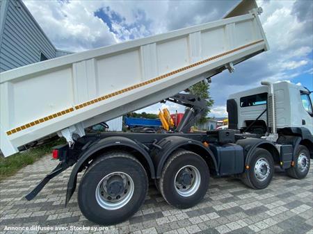 Marque : renault type: kerax puissance :460 Année : 27/05/2012 Km : 241000 Boite de vitesse : Auto Nombre Essieux :8X4 Suspension :LAME Année : 2012 EURO 5 Cabine Pare soleil : oui Climatisation : oui Contrôle anti patinage : oui Blocage de différentiel : oui Radio cd : oui Chassis Ptac : 32t P.V: 14t Taille pneu avant :13R22.5 Taille pneu arrière :13R22.5 Attelage remorque :non Superstructure Marque BI BENNE meiller Dimension :6X2.30 Révision du camion (vidange moteur boite pont) Passage aux mines