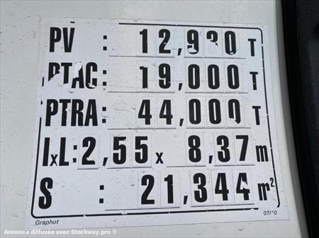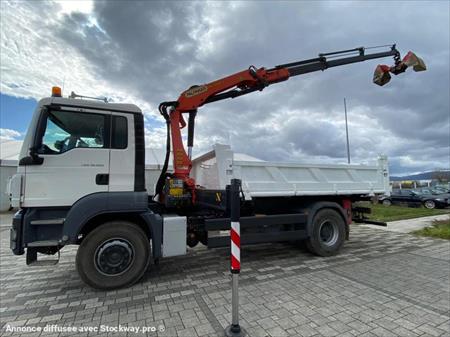 Camion Marque : Man type: TGS 18.360 Puissance :360 Année : 2011 Km : 182 000 kms Boite de vitesse : AUTOMATIQUE Nombre Essieux :4X2 EMPATTEMENT 3M90 Grue Marque : PALFINGER Type de grue : PK13 Année : 2011 Radio commande : OUI Nombre de stabilisateurs : 2 Position grue : arrière cabine Longueur Max : 10m Cabine Pare soleil : oui Climatisation : oui Contrôle anti patinage : oui Blocage de différentiel : oui Radio cd : oui Chassis BI BENNE - GRUE PTAC : 19t P.V. : 12T930 PTRA: 44T Superstructure BI BENNE Entretien: Révision de la grue Révision du camion Passage aux mines Controle de grue