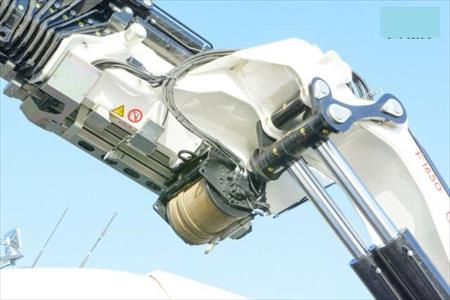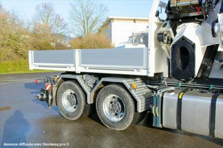 Grue: FASSI F1650 RA 2.28 avec support 5 voies entièrement hydraulique, avec 8 extensions hydrauliques sur le bras principal, Fly-Jib L816 avec 6 extensions hydrauliques, treuil à câble, télécommande radio V 7 cross, arrêt d'urgence, surveillance du support, couplage rapide entre grue et FJ, support supplémentaire, Tableau des charges utiles AFC (système de pliage automatique), AWC (contrôle automatique des cordes)