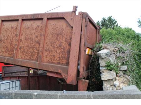 Benne amovible de camion. Longueur : 490 cm Largeur : 240 cm Hauteur : 135 cm Porte francaise +tape Q. Tôle de fond en hardox. Ne contient pas de verin hydraulique.