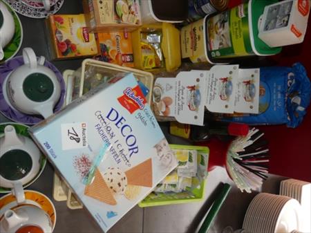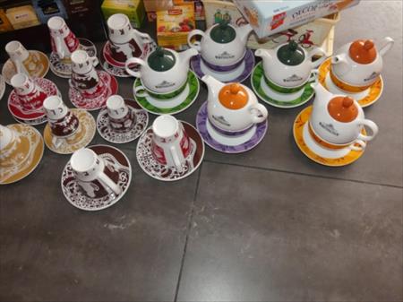 Consommables divers : épices, thés, tasses à café et théières, etc.