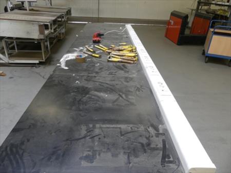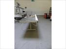 Etabli de travail fixe Dimensions du plan de travail : 90 cm x 360 cm Dimensions totales : 90 cm x 360 cm x 97 cm Etat : usagé Remarque : contenu du plan travail inclus