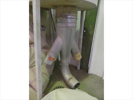 Aspiration Tension : 400 V triphasé Nombre de sacs : 3 Diamètre des sac : 45 cm Dimensions totales : 240 cm x 75 cm x 240 cm Etat : non testé Remarques : pas de fiche