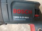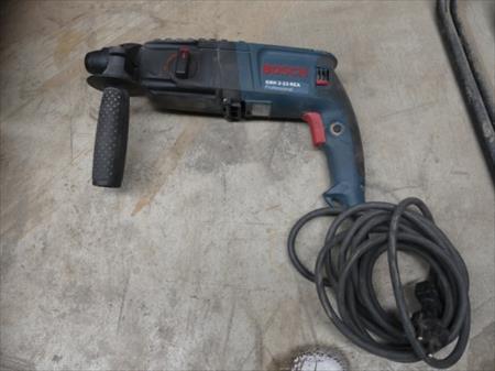 Marteau perforateur Marque : Bosch Modèle : GBH2-23 REA Tension : 230 V monophasé Puissance : 710 W Année : 2012 Etat : testé Remarque : enlèvement à charge de l'acquéreur, 1 cloche, 1 mandrin supplémentaire et 1 décapeur thermique inclus