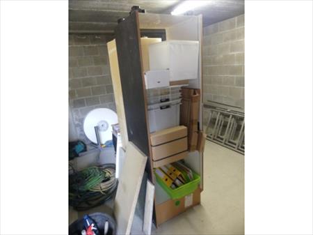 Bureau, imprimante, armoire tiroirs