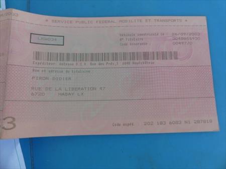 - Certificat de visite du contrôle technique (valable jusqu'au 12/09/2009