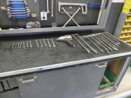 Etabli Dimensions du plan de travail : 208 cm x 74,5 cm Dimensions totales : 208 cm x 74,5 cm x 170 cm Etat : usagé Remarque : enlèvement et démontage à charge de l'acquéreur, contenu inclus.