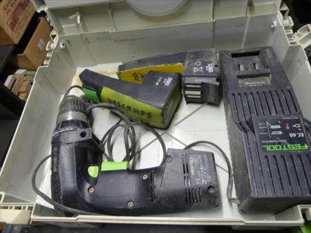 Marteau perforateur Marque : BOSCH Modèle : GBH 2-28 DFV Année : 2013 Tension : 230 V monophasé Puissance : 910 W Etat : testé Visseuse sur accus Marque : FESTOOL Modèle : GDD12 Remarques : dans son coffret avec 2 accus et 1 chargeur Etat : non testé