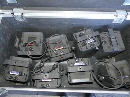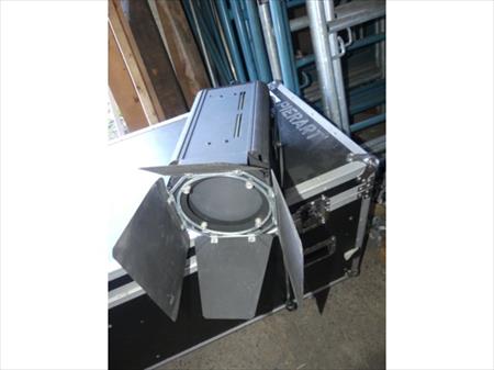 Projecteurs Quantité : 8 Modèle : STAGE SPOT 1000 Tension : 230 V monophasé Puissance : 1000 W Dimensions d'un projecteur : 25 cm x 23 cm x 45 cm Etat : bon, non testé Remarque : flycase de rangement non inclus