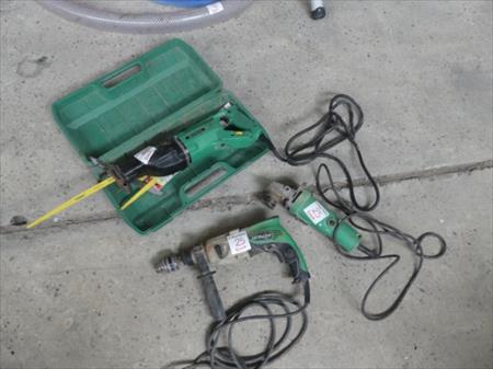 Marteau perforateur Marque : HITACHI Modèle : DH22PG Mandrin : type SDS Etat : testé Meuleuse d'angle Marque : HITACHI Modèle : G12SA Puissance : 750 W Etat : testé Scie sabre Marque : HITACHI Modèle : CR10V Puissance : 720 W Etat : testé