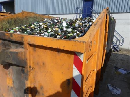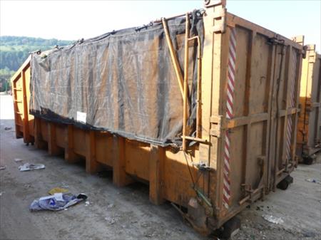 Conteneur Marque : Valvan Année : Pas de plaquette d'identification Numéro de fabrication : Pas de plaquette d'identification Numéro interne au Bep : 13 Dimensions : 250 cm x 620 cm x 243 cm Hauteur du crochet : +/- 145 cm Usage : vidange des bulles à verre Etat : utilisé mais bon, toujours en circulation pour la collecte des verres