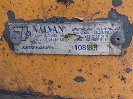 Conteneur Marque : Valvan Année : 2008 Numéro de fabrication : 1881 Numéro interne au Bep : 11 Dimensions : 250 cm x 620 cm x 243 cm Hauteur du crochet : +/- 145 cm Usage : vidange des bulles à verre Etat : utilisé mais bon, toujours en circulation pour la collecte des verres