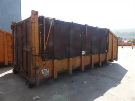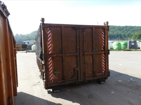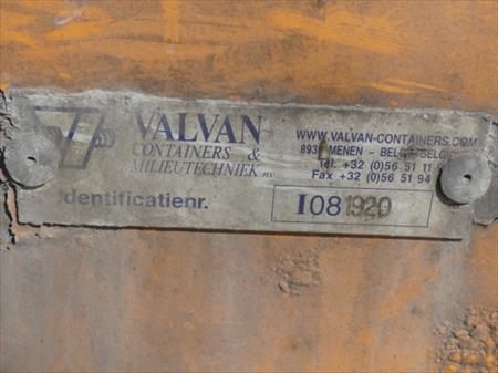 Conteneur Marque : Valvan Année : 2008 Numéro de fabrication : 1920 Numéro interne au Bep : 15 Dimensions : 250 cm x 620 cm x 243 cm Hauteur du crochet : +/- 145 cm Usage : vidange des bulles à verre Etat : utilisé mais bon, toujours en circulation pour la collecte des verres