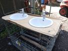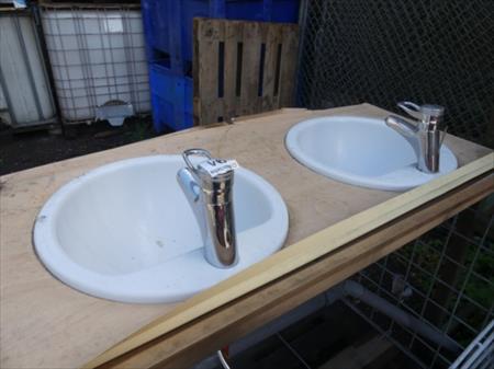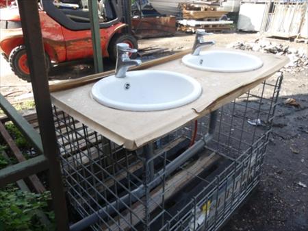 Lavabos Quantité : 2 Dimensions d'un lavabo : 47 cm x 20 cm Dimensions totales : 132 cm x 65 cm Etat : non testé Remarque : le lot se situe sur un bac grillagé, bac grillagé non inclus