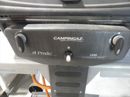 Barbecue à gaz Marque : El Prado Modèle : 2200 Gaz : G31 Dimensions de cuisson : 52 cm x 35 cm Dimensions totales : 124 cm x 52 cm x 115 cm Etat : testé