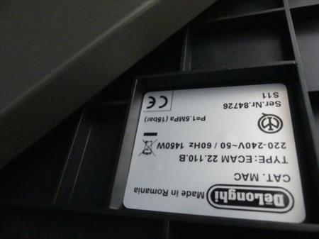 Machine à café Marque : Delonghi Modèle : Ecam 22.110.B Tension : 220 V monophasé Puissance : 1450 W Etat : testé et en état de fonctionnement