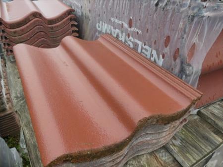 Tuiles Marque : Nelskamp Modèle ou couleur : Brun rouge Quantité approximative : 1040 Demi tuiles : 160 Rive droite : 30 Rive gauche : 60 Quantité de palettes : 7 Dimensions d'une palette : 85 cm x 130 cm x 140 cm Etat : neuf