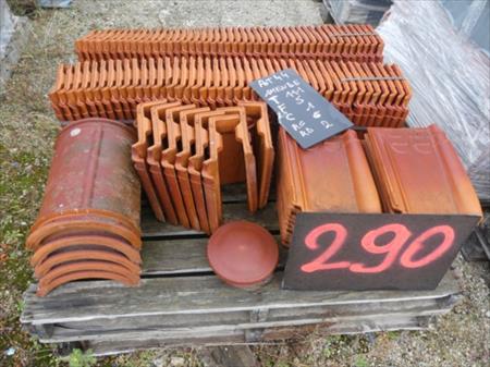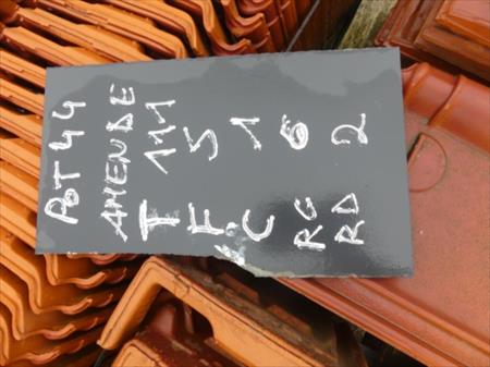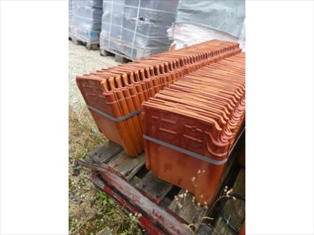 TuilesMarque : Pottelberg 44Modèle ou couleur : RustiqueQuantité approximative : 111Faitière : 5Rive droite : 2Rive gauche : 6Quantité de palettes : 1/4Dimensions d'une palette : 85 cm x 130 cm x 140 cmEtat : neuf