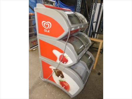 Congélateur pour glace Marque : IARP Modèle : VISIMAX SLIM Tension : 230 V monophasé Puissance : 120 W Gaz réfrigérant : R290 Quantité de gaz : 50 Gr Dimensions totales : 80 cm x 85 cm x 133 cm Etat : testé