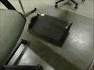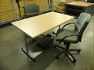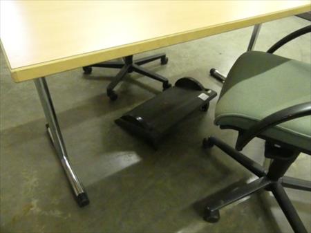 TABLE BUREAU, SIÈGES DE BUREAU SUR ROULETTES, POSE PIEDS SOUS BUREAU, ARMOIRE D'AFFICHAGE VITRÉE