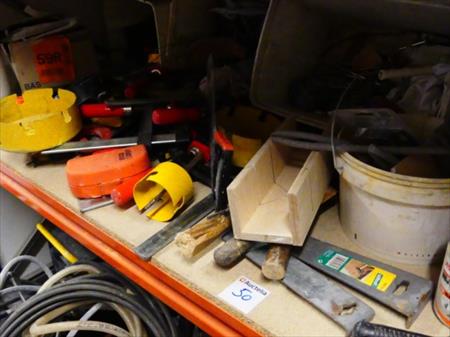 Outils divers, presses, scie cloche, ciseaux à bois, mèches, etc.