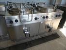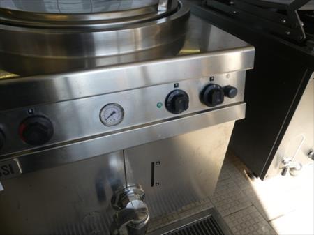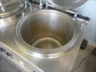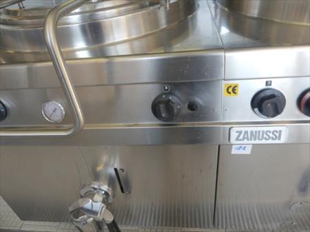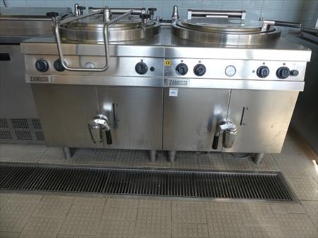 Cuiseur 2 cuves professionnels inox à gaz Marque : ZANUSSI Modèle : HD900 Dimensions totales : 160 cm x 105 cm x 105 cm Capacité : 2 x 100/140 L Etat : à reconditionner Remarques : raccordement gaz à débrancher lors de l'enlèvement