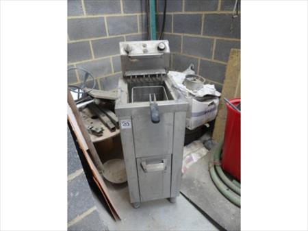 Friteuse professionnelle électrique Marque : Elcamo Dimensions du panier : 28 cm x 20 cm x 12 cm Dimensions totales : 36 cm x 47 cm x 107 cm Etat : non testé