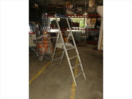 Escabelle Quantité de marches : 3 Hauteur de pallier : 110 cm Dimensions totales : 140 cm x 54 cm x 203 cm Etat : usagé