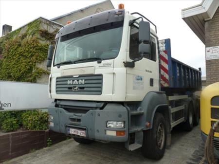 Container Camion Marque : MAN Modèle : D20 COMMON RAIL Année de construction : 2008 Numéro de châssis : WHAH26ZZ76M457524 TGA 33,350 Arbres 6X4 Kilomerstand : 350 000 km Documents embarqués : présent