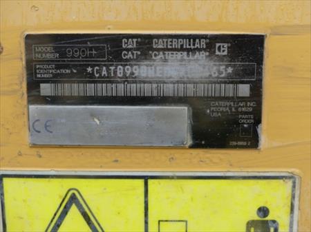 Chargeur sur pneus Marque : Caterpillar Année : 2009 Référence interne : 990-4 Numéro d'identification : CAT0990HEBWX00465 Heures : 43861 heures Modèle : 990H Puissance : 468 kW Poids : 82297 kg