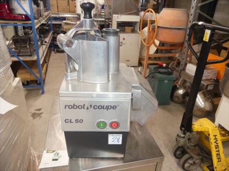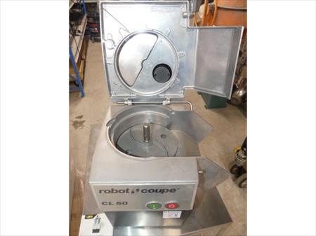 Robot coupe légumesMarque : ROBOTCOUPEModèle : CL50 version DTension : 230 V monophaséPuissance : 55 WPoids : 19,8 kgDimensions : 35 cm x 32 cm x 59 cmEtat : non testé, neuf, modèle d'expositionRemarques : disque de coupe manquant