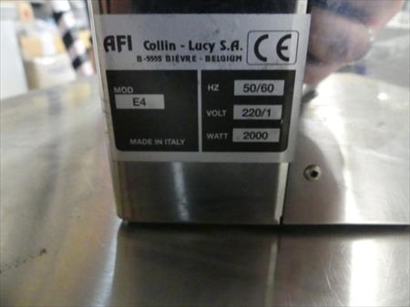 Friteuse électrique 1 cuve Marque : COLLIN LUCY Modèle : E4 Tension : 230 V monophasé Puissance : 2000 W Capacité : 4 L Dimensions : 42 cm x 23 cm x 31 cm Etat : neuf, modèle d'exposition