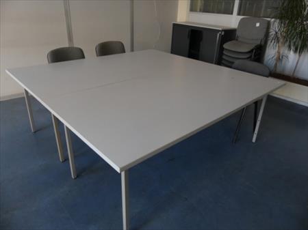 Tables Dimensions : 100 cm x 200 cm x 73 cm Quantité : 2 Chaises Piètement métallique Assise et dossier tissu Quantité : 8 Porte-manteaux Hauteur : 175 cm