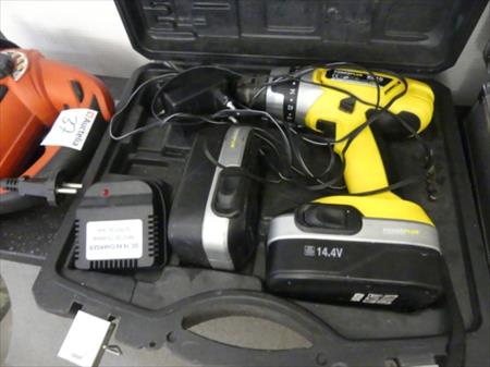 Scie sauteuse Marque : Black & Decker Modèle : KS800 S Tension : 230 V monophasé Etat : testé Visseuse sur batteries Marque : Powerplus Modèle : X010 Etat : batteries à recharger Fourni avec coffret, chargeur et batteries de réserve Décapeur thermique Marque : Steinel Modèle : 3484 Tension : 230 V monophasé Etat : non testé