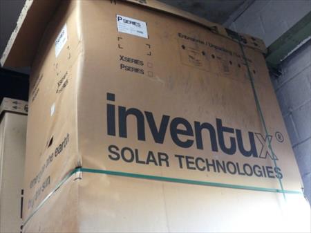 Panneaux photovoltaïques Marque : Inventux Modèle : PSERIES P110FIX Quantité de panneaux : 44 pièces (2 cartons) Poids d'un carton : 609 kg Dimensions du contenant : 120 cm x 80 cm x 151 cm Etat : neuf Enlèvement en début de journée