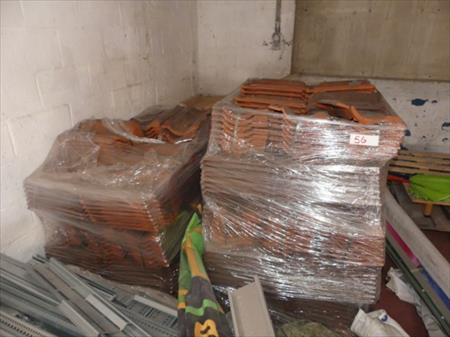 Solde d'attaches pour panneaux photovoltaïques, solde de tuilesQuantité d' attaches : le contenu de la paletteQuantité de tuiles : le contenu de 2 palettesQuantité et dimensions des barres :+/- 60 pièces de 6,30 mEtat : neuf et usagéRemarque : panneaux publicitaires (1 palette) inclus