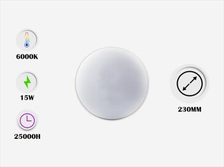 5 x 15W LED plafonnier Diamètre 230 (CL-PGY-01), 25.000 h, (AC85-240 V) 50/60 Hz, en PVC/Aluminium.