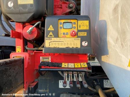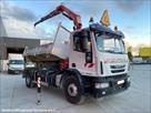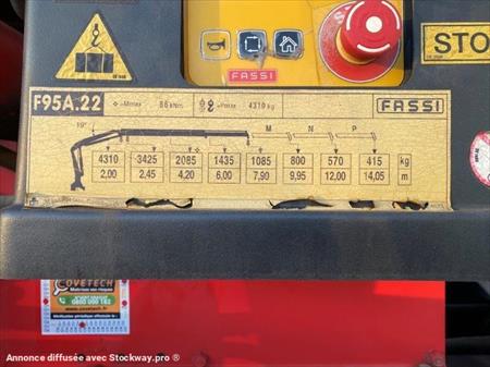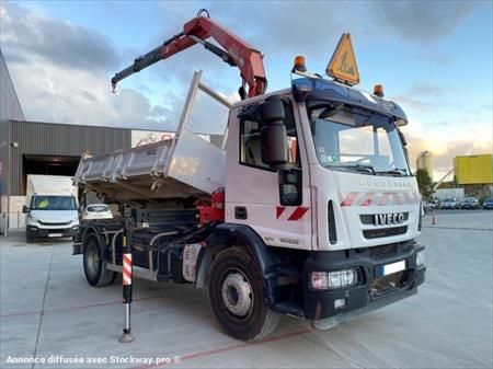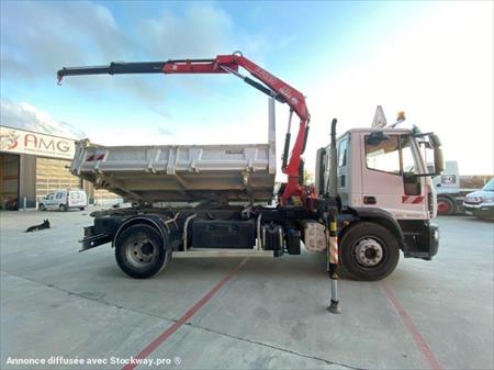 IVECO EUROCARGO 160E22 Tri-benne et grue FASSI F95A.22 1ère M.E.C : 01/04/2011 Kilométrage : 82 634 km Puissance : 220 ch Norme : Euro 5 / Adblue EEV Boîte de vitesse : manuelle 8 rapports Suspension : mécanique Essieux : 4x2 PV : 9.038T PTAC : 16T PTRA : 32T500 L x l : 7.32m x 2.55m Pneumatiques : 11R22.5 EQUIPEMENTS : GRUE FASSI F95A.22 2 allonges hydrauliques Portée : 1085kg à 7.90m 2 stabilisateurs Poste bas droit et gauche Tri-benne SEMPERE Ridelles gauche et droite manuelle Porte arrière universel Coffre de rangement Remorquant 2 gyrophares + 1 tri-flash CABINE courte Climatisation Autoradio Ordinateur de bord Vitres et rétroviseurs électrique Siège à suspension