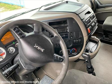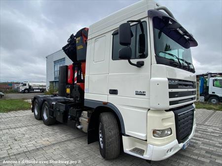 Marque DAF Type XF 105 510 Date de 1ere mise en circulation 20/07/2010 Kilométrage 303000 Euro 5 510 cv Boîte de vitesses AUTO Châssis pv 18T080 ptac 26T200 ptra 44T200 Essieux : 6X4 Cabine Type de cabine Cabine PROFONDE Pare-soleil Grue Constructeurs PALFINGER Type de grue PK 50002 Longueur max 16m00 - 2t3 treuil A distance radio-commandée 4 Stabilisateurs Position de la grue derrière la cabine