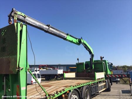 Type Premium Lander 380 6x2 + grue fassi 230 Date De 1ere Mise En Circulation 17/03/2011 Kilométrage 268000 Dimensions plateau 7,8 x 2,44m Essieu 6x2 Nombre D'essieux Moteurs 1 Nombre D'essieux 3 Suspension lame +air Grue fassi 230 Constructeurs grue fassi À Distance radiocommande Nombre Stabilisateurs 2 Hydraulique extensions 2 2505kgs à 8m Châssis Poids a vide 14993 kg Poids PTAC 26000 PTRA : 40T Empattement 550 cms Motorisation Marque Du Moteur Renault Puissance 380 Boîte De Vitesses manuelle Transmission De La Marque ZF Blocage De Différentiel Régulateur De Vitesse treuil Cabine Type De Cabine jour porte engins
