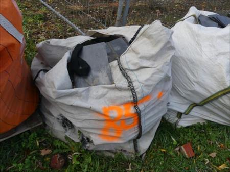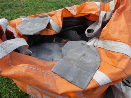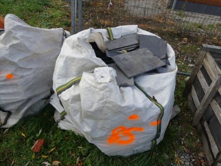 Ardoises naturelles Dimensions : 23 cm x 36 cm sur palette et big bag blanc 26 cm x 36 cm, 2 coins coupés et dans le big bag orange Solde de chantier Lot tel que sur photos