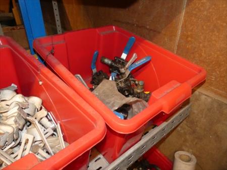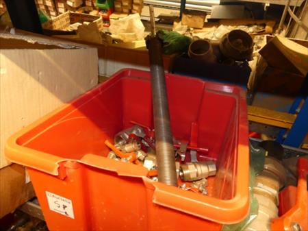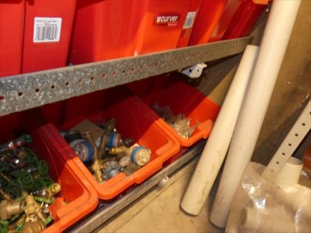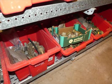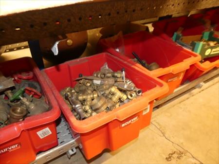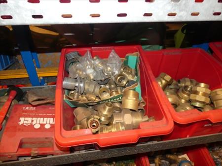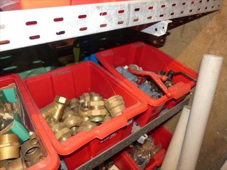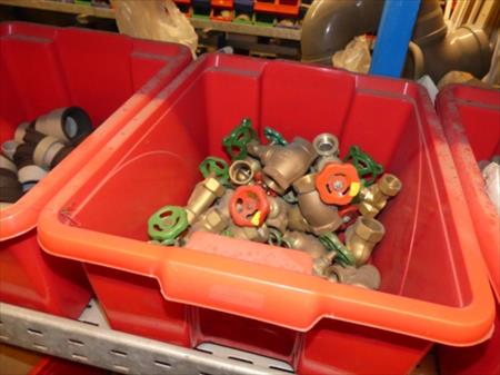 Raccords en pvc, laiton, cuivre, galvanisé Quantité : le contenu des bacs en pvc rouges Etat : neuf Remarque : rack non inclus