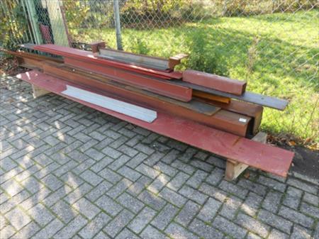Solde de poutrelles et plats en acier Longueurs et modèles diverses de 100 cm à 480 cm Poids total : +/- 1180 kg Lot tel que sur photos