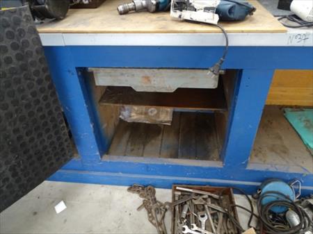 ETABLI EN BOIS AVEC PLAN DE TRAVAIL MÉTALLIQUE