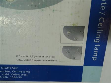 1 plafonnier pour living Diamètre : 500 mm Avec 3 lampes GU max 14 W et 100 led Marque : Paul Neuwaus. Valeur magasin : 150 Envoi: tarif B