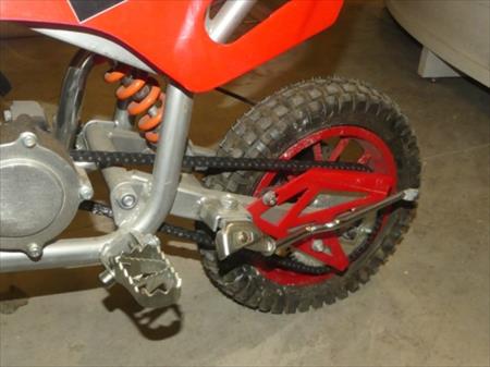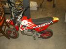 Petite moto de cross Marque : Symex Modèle : Racing Dimensions totales : 110 cm x 75 cm x 60 cm Etat : non testé Remarque : pneus à reconditionner