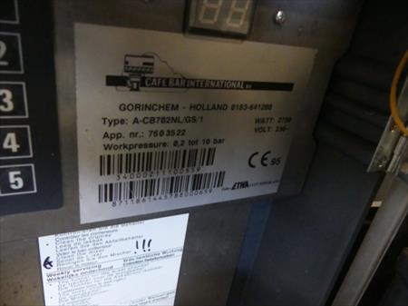 Boisson machine pour boissons chaudeMarque : EtnaModèle : A-CB702NL/GS/1Tension : 230 V 1 phasePuissance : 2750 WAnnée de construction : 1995État : non testé